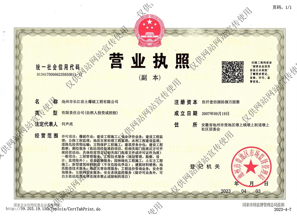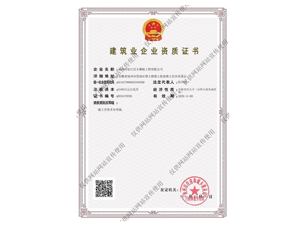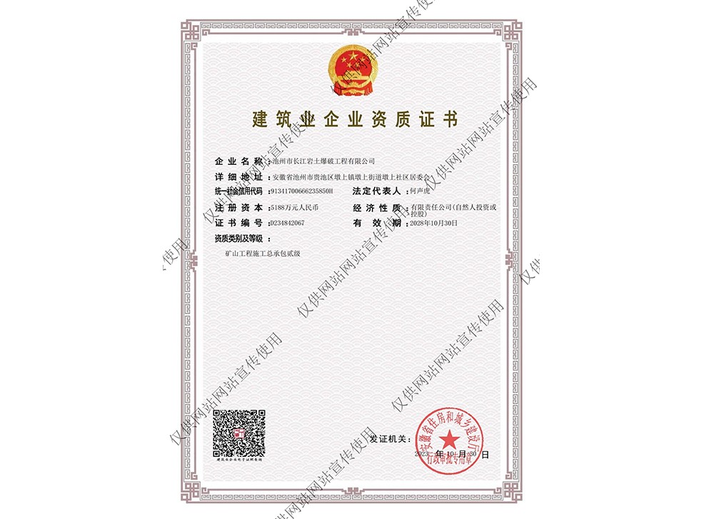 池州市長(zhǎng)江巖土爆破工程有限公司是經(jīng)省、市、區(qū)公安機(jī)關(guān)核準(zhǔn),工商行政管理局登記注冊(cè)的具有獨(dú)立法人資格的爆破作業(yè)施工企業(yè)。公司成立于2007年,注冊(cè)資金5188萬(wàn)元,擁有一級(jí)爆破資質(zhì),二級(jí)礦山工程總承包資質(zhì)和非營(yíng)業(yè)性道路危險(xiǎn)貨物運(yùn)輸資質(zhì)。