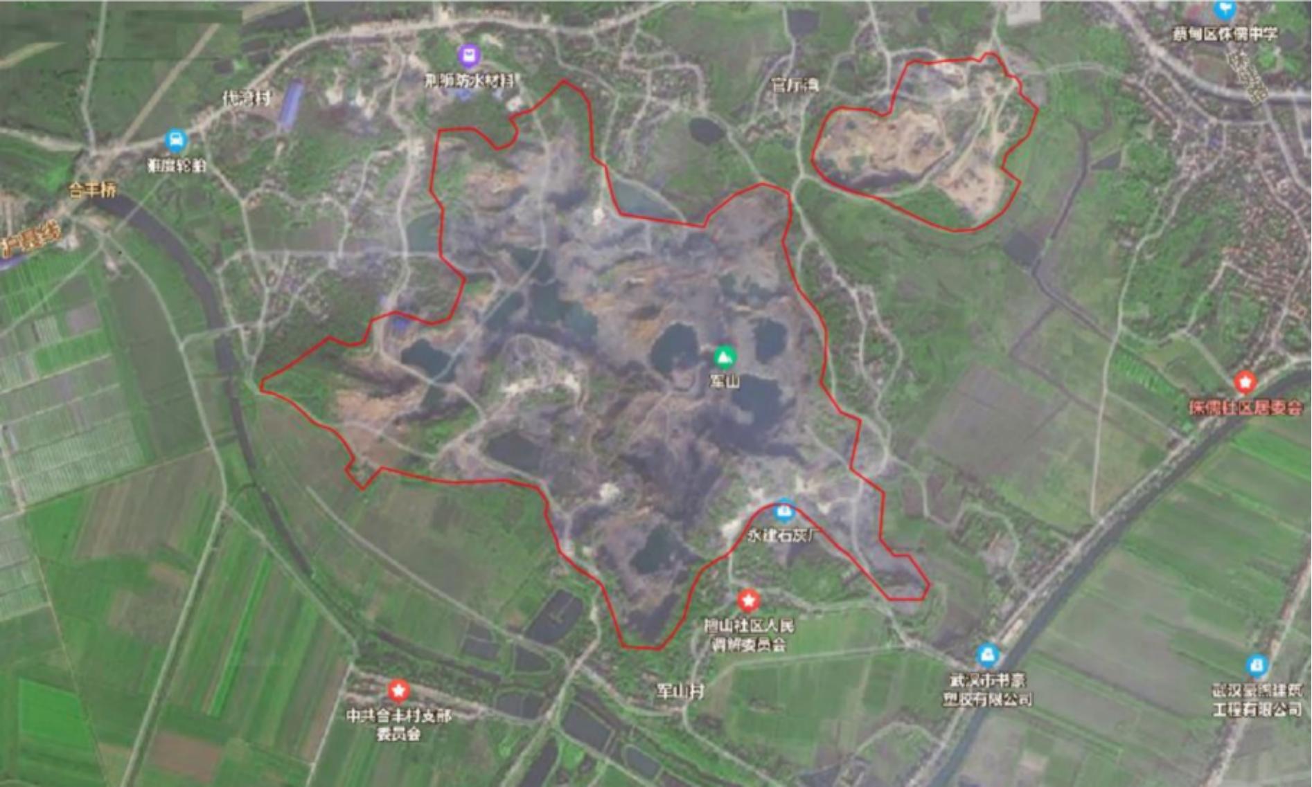 該項目治理面積86.4公頃,為武漢市蔡甸區(qū)近年重點工程,旨在打造戰(zhàn)略機遇為引擎、旅游服務為支撐,示范農業(yè)+郊野游憩為基礎的三產融合產業(yè),形成機遇先導產業(yè)園區(qū)、城鄉(xiāng)生活家園、礦山郊野公園的“一芯三園”功能分區(qū)。項目緊鄰G318國道,距侏儒山街道約1.0km,距武漢市城區(qū)中心約30km 。